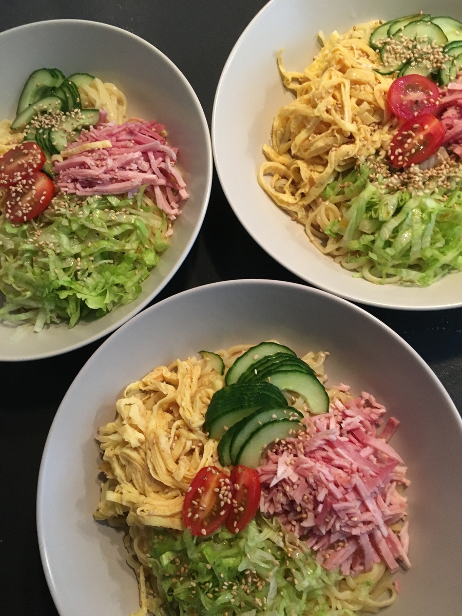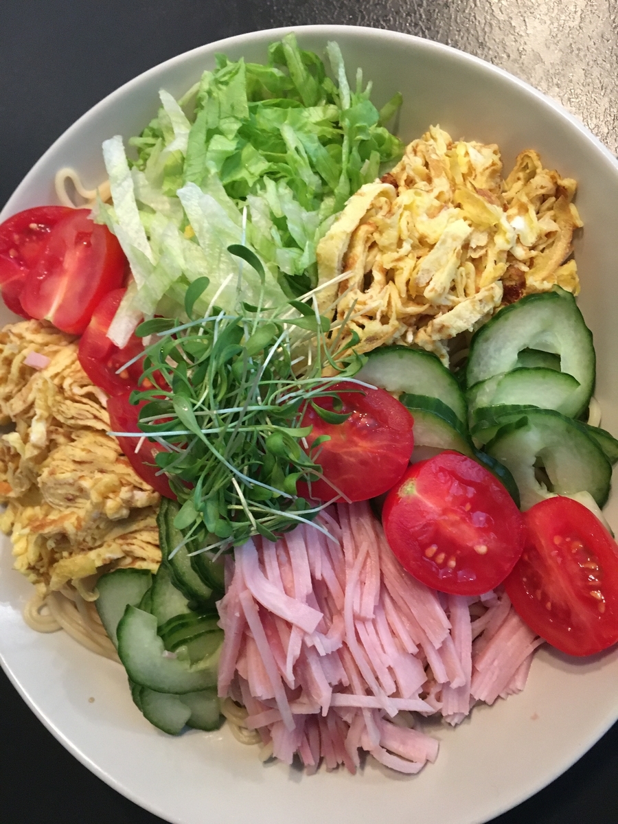 冷やし中華(ハム、玉子、きゅうり、レタス、トマト)