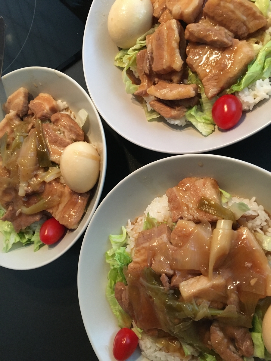 豚バラの角煮丼(豚バラ、玉子、ネギ、レタス)