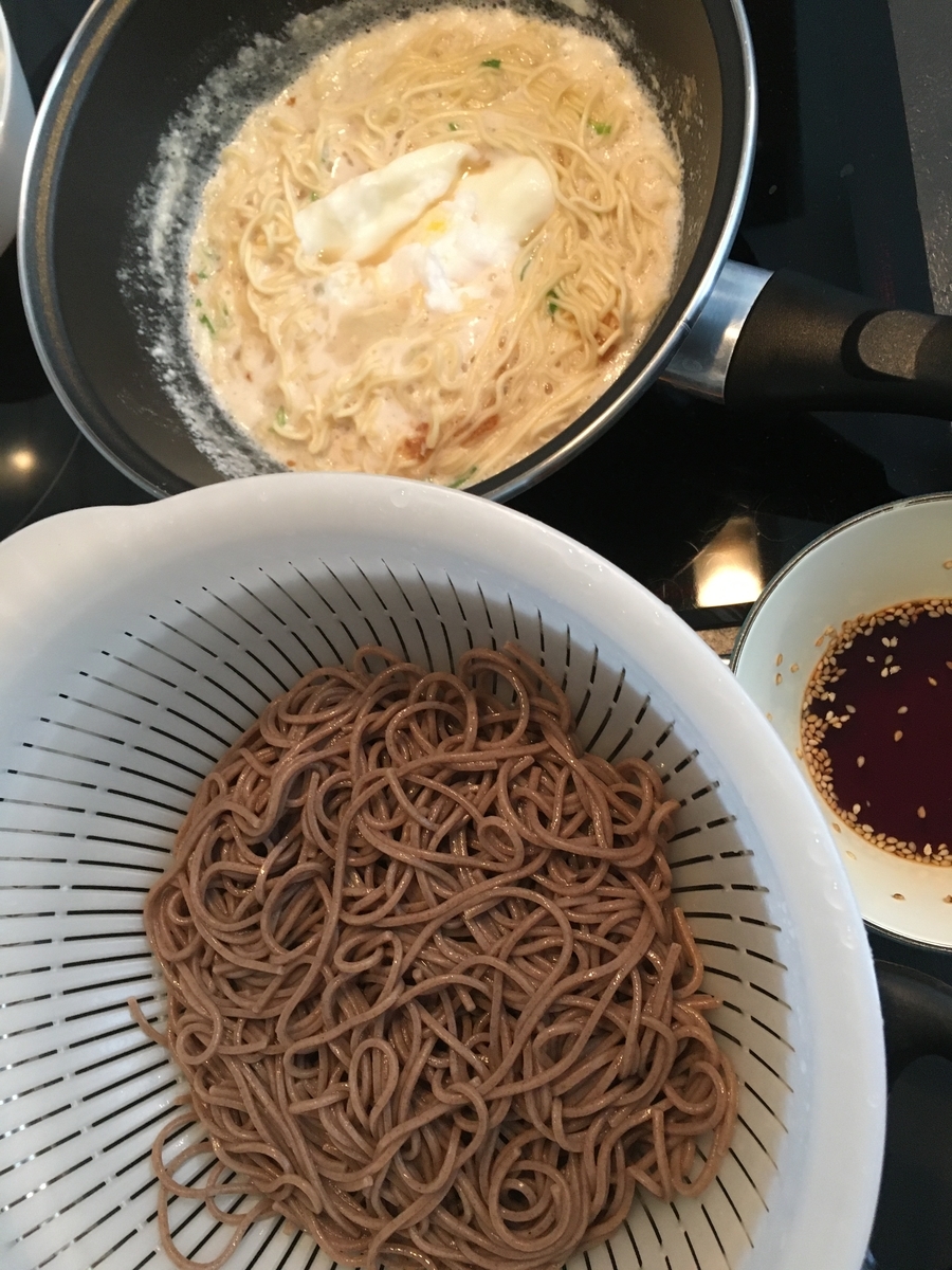 昼:ざる蕎麦、ラーメン玉子入り