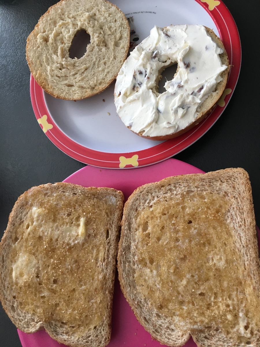昼:ベーグル、シュガートースト