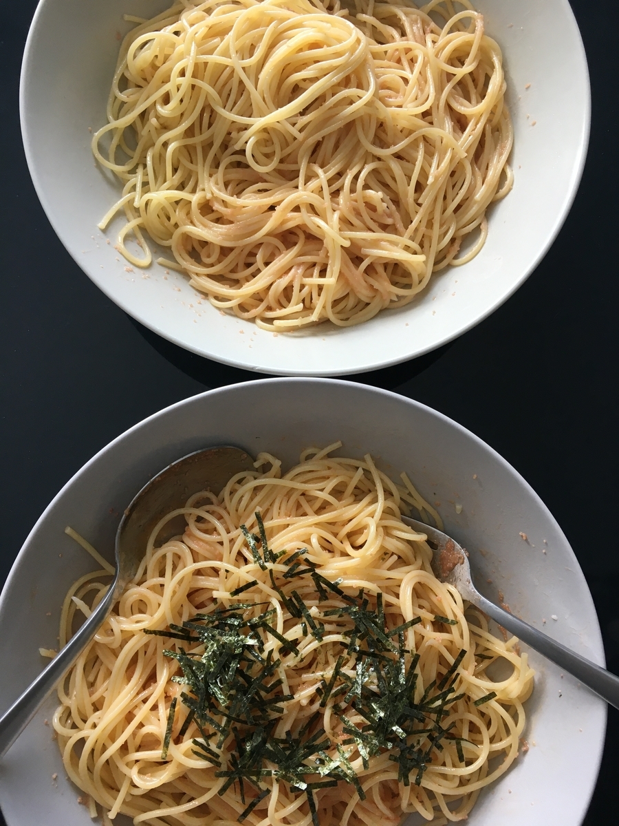 ツナマヨパスタ(ツナ、玉ねぎ、マッシュルーム)、アボカド