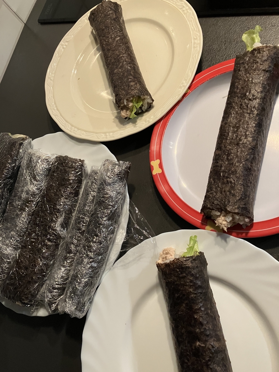 朝:ツナ太巻き寿司(昨夜の残り)