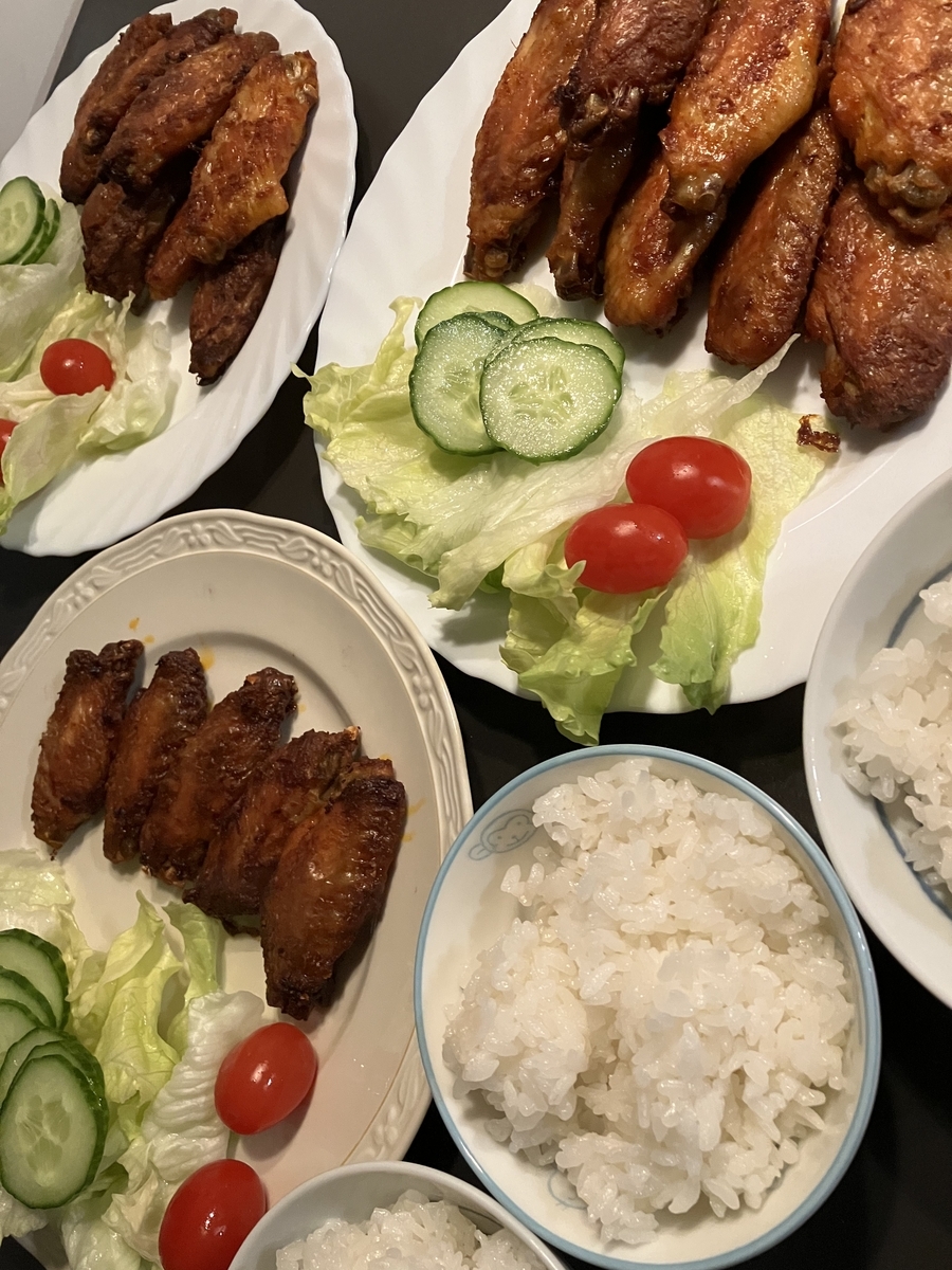 昼:マーケットの鶏肉屋さんの惣菜、ご飯