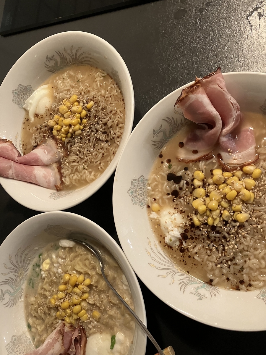 夜:ラーメン、ソーセージ